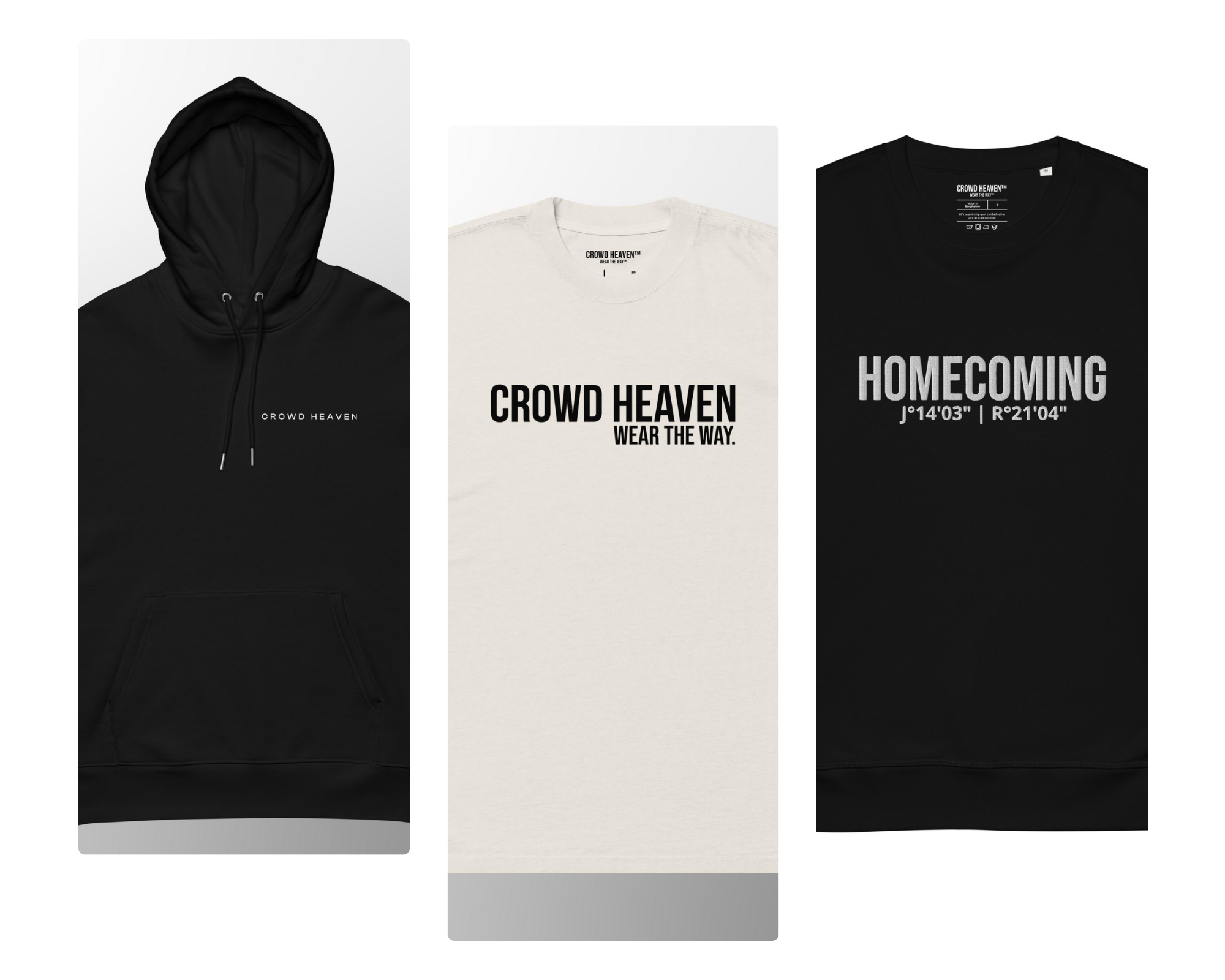 Crowd Heaven started as a whisper, a gentle nudge to create something different. Not loud. Not flashy. But honest in its purpose. It began with a single phrase on a black tee, and grew into a community of believers who wear their faith not for show,